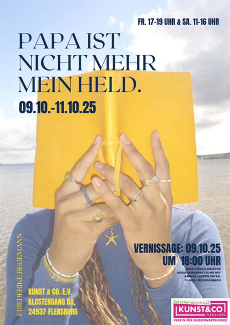 Die Ausstellung "Papa ist nicht mehr mein Held" zeigt eine künstlerische Auseinandersetzung mit ambivalenten Vater–FLINTA*-Beziehungen. Während sich FLINTA*-Personen innerhalb unserer patriarchalen Gesellschaft häufig intensiv mit sich selbst und ihren Prägungen auseinandersetzen müssen, bleibt diese Auseinandersetzung bei ihren Vätern oft aus. Daher machen Flintas* im Laufe ihres Lebens häufig die Erfahrung, dass ihre Väter den "Heldenstatus" verlieren – weil sie abwesend waren oder schlicht nicht in der Lage, Verantwortung zu übernehmen. Um Diesem kollektiven thema Sichtbarkeit zu verschaffen, hat Friederike Begemann im Rahmen Ihrer praktischen Bachelorarbeit betroffene FLINTA*-Personen fotografisch porträtiert und Zitate von ihnen festgehalten.